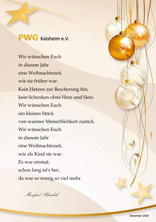 Wir die PWG Kaisheim e.V. mit seinen Mitgliedern samt Vorstandschaft wünschen unserem